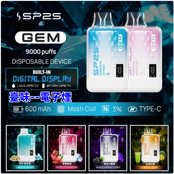 臺味–電子煙SP2S GEM 9000 PUFFS 拋棄式電子煙 思博睿 9000口一次性電子煙 台灣現貨