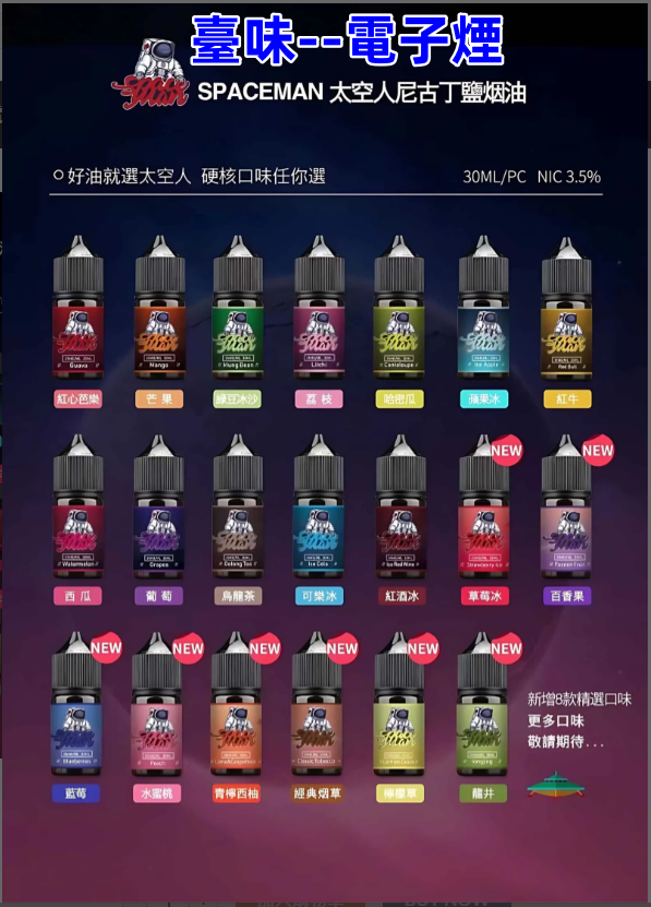 高品質煙油:SPACEMAN 煙油以其高品質及豐富的口味選擇而聞名,為使用者帶來獨特的吸食體驗。